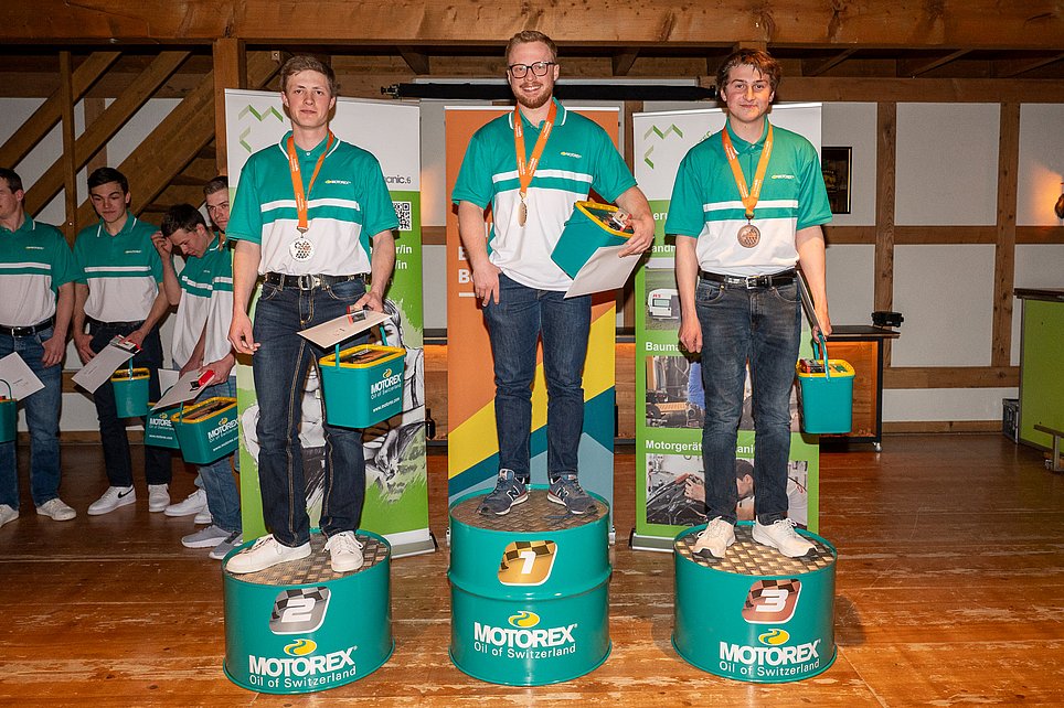 Belohnt wurden die drei Gewinner mit den obligaten Medaillen in Gold, Silber und Bronze sowie einem Ausbildungsgutschein. Dieser eröffnet ihnen vielfältige Weiterbildungs-möglichkeiten, etwa zum Diagnosetechniker mit eidg. Fachausweis oder weiterführend zum Meister mit eidg. Diplom. Auch ein Studium an einer Fachhochschule steht ihnen offen. Den feierlichen Abschluss bildete die Siegerehrung und anschliessende Feier mit Freunden und Familie im Römerhof in Bühl, bei der die Gewinner gebührend geehrt wurden.