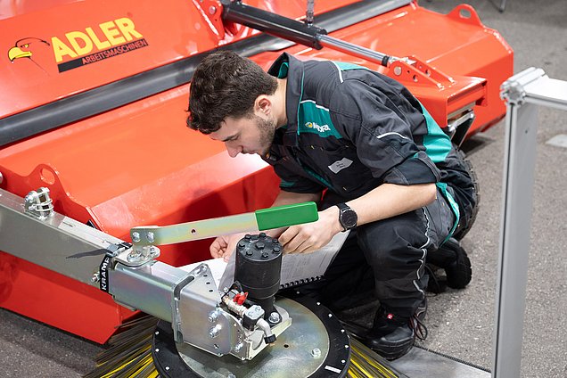 Bien reposés après la première journée de compétition et débordant d'énergie, les mécaniciens en machines agricoles et machines de chantier ont entamé la deuxième journée de compétition à 9 heures. L'expérience montre que la deuxième journée est un peu plus détendue, car le déroulement est connu de tous. Cinq candidats ont dû travailler simultanément sur l'un des cinq postes différents. Les participants disposaient d'un délai de 1h15 pour chaque tâche.
