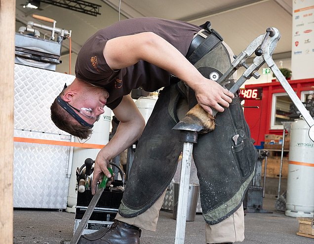 Le matin, les jeunes professionnels ont tout d'abord dû réaliser la tâche « Ferrage normal – attelage » avant de passer à « l´épreuve surprise ». Ce n’est qu’au début de cette épreuve que les participants ont appris quels fers à cheval spéciaux ils devaient forger. La tâche consistait à forger un fer à cheval en aluminium pour un trotter et un fer à cheval en acier pour un galopeur. Une tâche exigeante qui requérait à la fois de l'expérience et de la maîtrise artisanale.